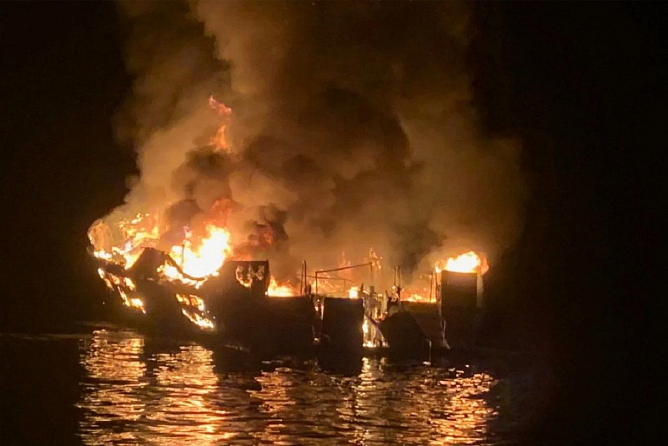 В США сгорело и затонуло туристическое судно